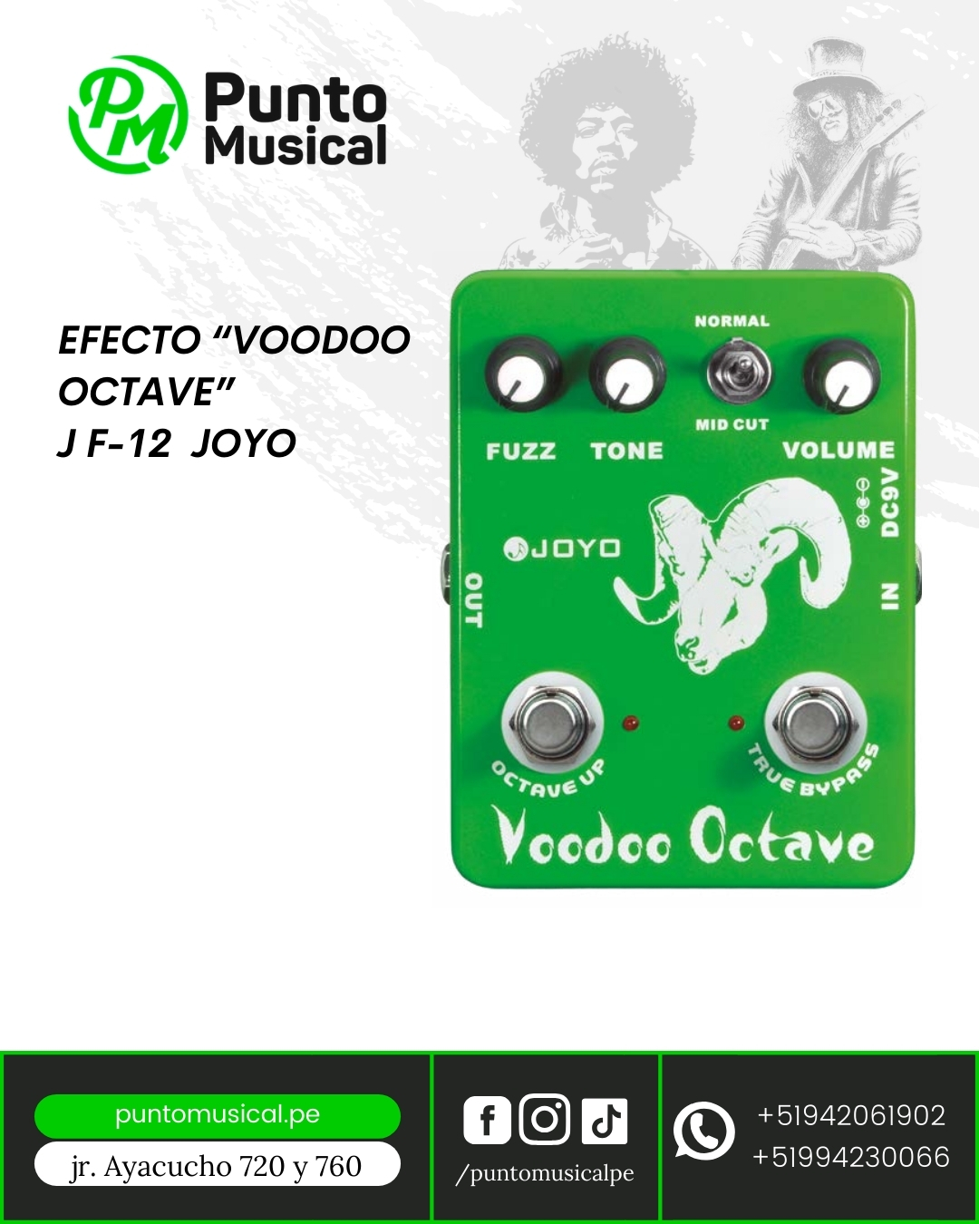 l Voodoo Octave JF-12 de JOYO es un pedal octavador que te permite agregar una octava adicional a tu sonido, creando un efecto único y poderoso. Este pedal ofrece una mezcla perfecta entre el tono original de tu guitarra y una octava superior o inferior , añadiendo riqueza y profundidad a tu música.