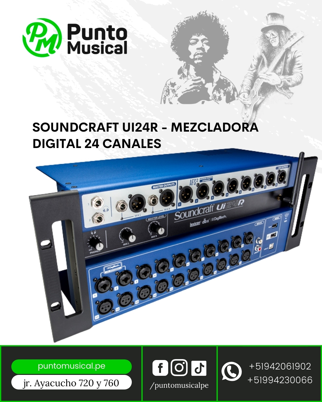 Descripción: El Soundcraft Ui24R es un mezclador digital de 24 canales diseñado para ofrecer una solución de mezcla potente y versátil tanto para sonido en vivo como para grabación en estudio en Trujillo. Su característica principal es su control inalámbrico completo a través de dispositivos conectados por Wi-Fi, como tablets, smartphones y computadoras, lo que elimina la necesidad de una superficie de control física y permite a los ingenieros y músicos moverse libremente por el espacio.